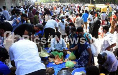 Event Description : People rush to buy vegetables and fruits at SJP Road during Coronavirus lockdown in the wake of the 2nd wave of COVID-19, in Bengaluru on Sunday 9th May 2021