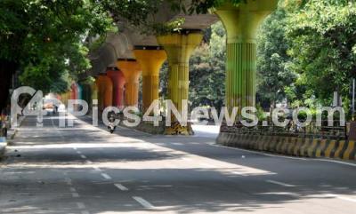 Photo Caption : Deserted MG Road, during the 14 day strict state wide lockdown begins in Karnataka today, to contain the spread of Coronavirus , in Bengaluru on Monday 10th May 2021