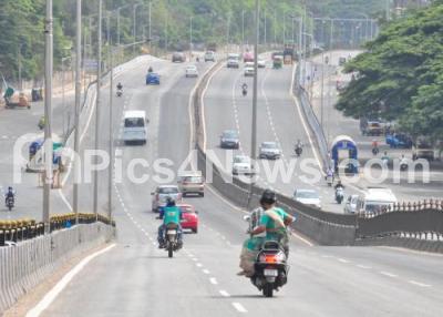 Photo Caption : Deserted Hebbal Road, during the 14 day strict state wide lockdown begins in Karnataka today, to contain the spread of Coronavirus , in Bengaluru on Monday 10th May 2021