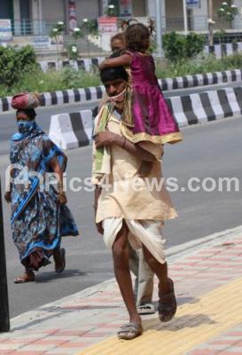 Photo Caption : Daily wage workers seen walking from Kottigepalya to Magadi Road, during the 14 day strict state wide lockdown begins in Karnataka today, to contain the spread of Coronavirus , in Bengaluru on Monday 10th May 2021