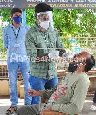 Photo Caption : Health officers collect swab samples for COVID-19 tests at KC General hospital amid surge in coronavirus cases during the statewide lockdown, to contain the spread of Coronavirus, in Bengaluru on Thursday 13th May 2021
