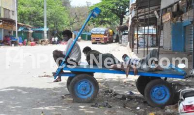Photo Caption : Workers napping on bullock cart at APMC Yard, Yeshwanthapura during lockdown in the wake of the 2nd wave of COVID-19, in Bengaluru on Friday 14th May 2021