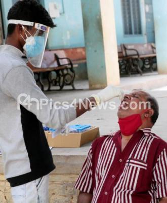 Photo Caption : Health worker collect swab samples for COVID-19 tests at Primary Health centre, Kengeri, amid surge in coronavirus cases, in Bengaluru on Monday 17th May 2021