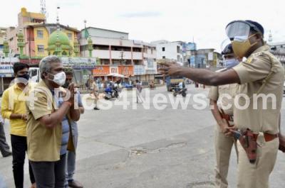 Photo Caption : Police check point during coronavirus lockdown in the wake of the 2nd wave of COVID-19, in Bengaluru on Thursday 20th May 2021