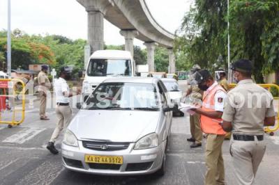 Photo Caption : Police check-post at Magadi road during coronavirus lockdown in the wake of the 2nd wave of COVID-19, in Bengaluru on Thursday 20th May 2021