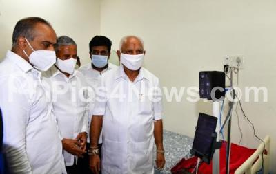 Photo Caption : CM BS Yediyurappa with Minister V Somanna, MP PC Mohan others inaugurated the Covid Care Centre at the Endocrinology Centre, set up by Volvo Group India, in Bengaluru on Friday 21st May 2021
