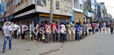 People stand in a huge queue to collect food near KR Market during the Coronavirus Lockdown, in Bengaluru on Friday 21st May 2021