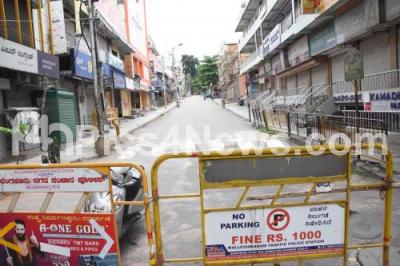 Photo Caption : Roads closed at Malleswaram shopping area during lockdown in the wake of the 2nd wave of COVID-19, in Bengaluru on Friday 21st May 2021