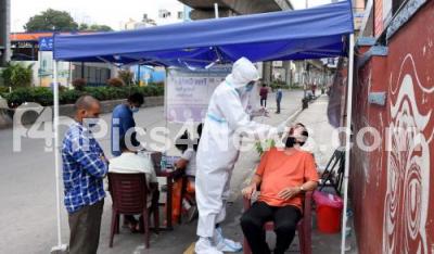 Swab test at Magadi road during the coronavirus (COVID 19) pandemic, in Bengaluru on Sunday 23rd May 2021