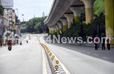 Photo Caption : Deserted MG Road during Coronavirus lockdown in the wake of the 2nd wave of COVID-19, in Bengaluru on Monday 24th May 2021