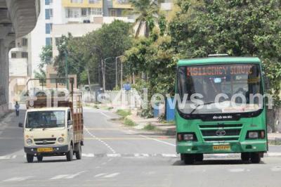 Photo Caption : Emergency bus service on Mysuru Road during Coronavirus lockdown in the wake of the 2nd wave of COVID-19, in Bengaluru on Tuesday 25th May 2021