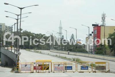 Photo Caption : Flyover at Kanteerava Studio being closed during Coronavirus lockdown in the wake of the 2nd wave of COVID-19, in Bengaluru on Tuesday 25th May 2021