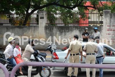 Photo Caption : Police check-post at University gate, Mysuru Road during Coronavirus lockdown in the wake of the 2nd wave of COVID-19, in Bengaluru on Tuesday 25th May 2021