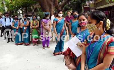 Photo Caption : Age 18 and above people standing in a line at Dasappa Government hospital, during COVID-19 vaccination drive, in Bengaluru on Tuesday 25th May 2021