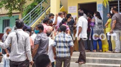 Photo Caption : People standing in a line at KC General hospital, during COVID-19 vaccination drive, in Bengaluru on Tuesday 25th May 2021