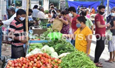 Photo Caption : People shopping vegetables and fruits at Srinagar Bus Stand Coronavirus lockdown in the wake of the 2nd wave of COVID-19, in Bengaluru on Tuesday 25th May 2021