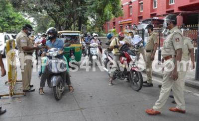 Photo Caption : Police check-post at University gate, Nrupathunga Road during Coronavirus lockdown in the wake of the 2nd wave of COVID-19, in Bengaluru on Tuesday 25th May 2021