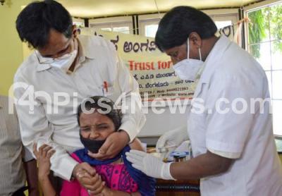 COVID-19 vaccination drive for orphaned blind students organised by BBMP and Bharati Nagar Residents Forum at Snehadeep Disabled Trust, Hutchins Road, Cox Town during the Coronavirus pandemic, in Bengaluru on Wednesday 26th May 2021