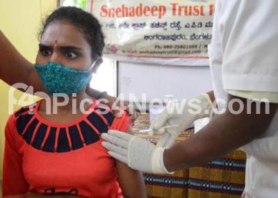 COVID-19 vaccination drive for orphaned blind students organised by BBMP and Bharati Nagar Residents Forum at Snehadeep Disabled Trust, Hutchins Road, Cox Town during the Coronavirus pandemic, in Bengaluru on Wednesday 26th May 2021