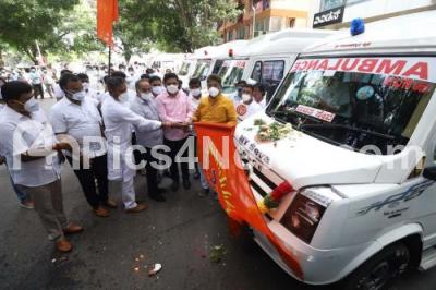 Event Description : Minister R Ashok, MP PC Mohan, BJP Leader BY Vijayendra flagged off “My Seva Ambulance Service” during the Covornavirus Lockdown, in Bengaluru on Friday 28th May 2021