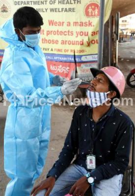 Swab tests at KR Market during Coronavirus pandemic, in Bengaluru on Saturday 29th May 2021