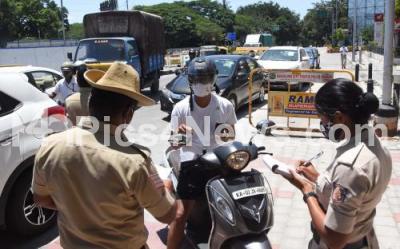 Photo Caption : Police check-post at CV Raman road during Coronavirus lockdown in the wake of the 2nd wave of COVID-19, in Bengaluru on Monday 31st May 2021
