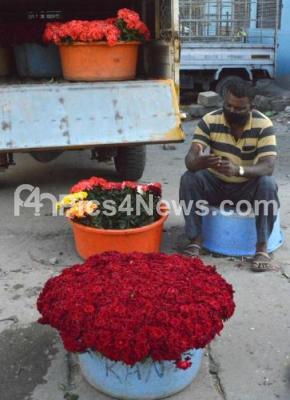 Less business for flower vendors waiting for the customers at SJP Road during Coronavirus lockdown in the wake of the 2nd wave of COVID-19, in Bengaluru on Monday 31st May 2021