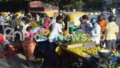 Photo Caption : People buying vegetables and fruits during Coronavirus lockdown in the wake of the 2nd wave of COVID-19, in Bengaluru on Monday 31st May 2021