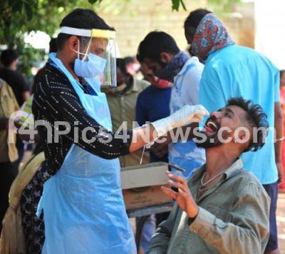 Photo Caption : Health worker collect swab samples for COVID-19 tests, amid surge in coronavirus cases, in Bengaluru on Monday 31st May 2021