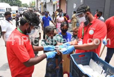 Photo Caption : Act of Love NGO members distributed free food at KR Market during lockdown in the wake of the 2nd wave of COVID-19, in Bengaluru on Thursday 3rd June 2021