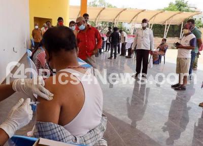 Photo Caption : A health worker administers a dose of the COVID-19 vaccine to a beneficiary at Bagalagunte during COVID-19 vaccination drive, in Bengaluru on Friday 4th June 2021