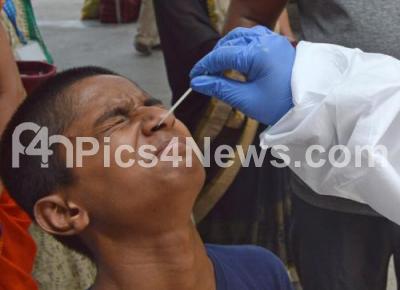 Swab tests to travelers at Bengaluru City Railway station during Coronavirus pandemic, in Bengaluru on Friday 4th June 2021