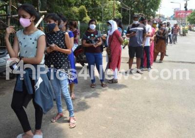 Photo Caption : People standing in a line at KR Market, during COVID-19 vaccination drive, in Bengaluru on Friday 4th June 2021
