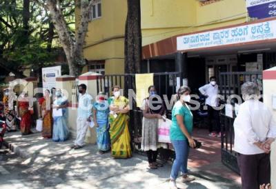 Photo Caption : People wait for their turn to get covid-19 vaccine at Maternity Hospital, Rajajinagar during COVID-19 vaccination drive, in Bengaluru on Saturday 5th June 2021