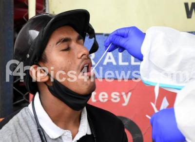Health worker collect swab samples for COVID-19 tests at KR Market, amid surge in coronavirus cases, in Bengaluru on Sunday 6th June 2021