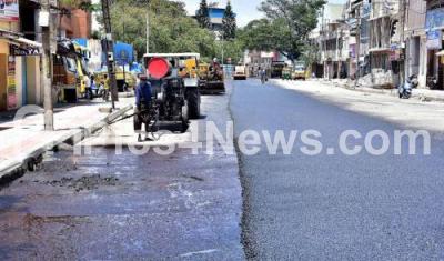 Photo Caption : Road work in progress at Kalasipalyam during the Coronavirus Pandemic, in Bengaluru on Monday 7th June 2021