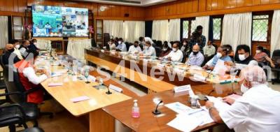 Photo Caption : CM BS Yediyurappa meeting with 8 district DCs via video conference on COVID-19 situation at Home office Krishna, also seen are DCM Ashwath Narayan, Minsters Sudhakar, Narayan Gowda, Arvind Limbavali and others, in Bengaluru on Thursday 10th June 2021
