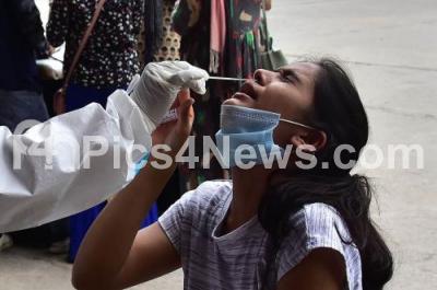 Photo Caption : Swab test for passengers at Bengaluru City Railway station during Coronavirus pandemic, in Bengaluru on Saturday 12th June 2021