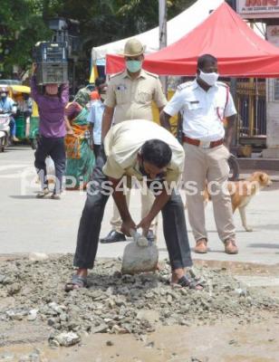 Event Description : BBMP workers repair the manhole leakage at KR Market, in Bengaluru on Wednesday 16th June 2021