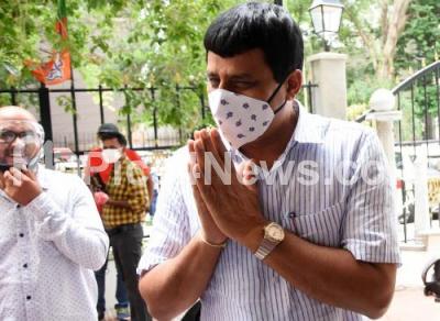 Photo Caption : Minister CP Yogeshwar arriving to attend meeting with BJP General Secretary and Karnataka in charge Arun Singh at BJP Head office, in Bengaluru on Thursday 17th June 2021