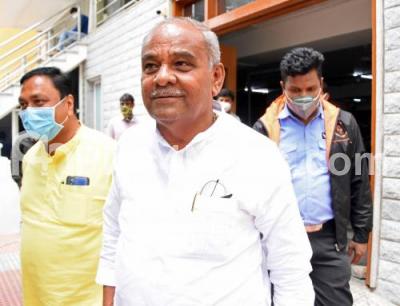 Photo Caption : Minister Umesh Katti arriving to attend meeting with BJP General Secretary and Karnataka in charge Arun Singh at BJP Head office, in Bengaluru on Thursday 17th June 2021