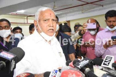 Photo Caption : CM BS Yediyurappa addressing a press conference at BJP Head Office, Malleshwaram, in Bengaluru on Friday 18th June 2021