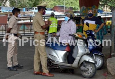 Police Check Post at KR Market during weekend curfew in the wake of the 2nd wave of COVID-19, in Bengaluru on Sunday 20th June 2021
