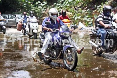 Photo Caption : Motorists and people having a tough time coping the bad smell due to open manhole at Freedom Park, in Bengaluru on Wednesday 23rd June 2021