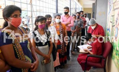 Photo Caption : People wait for their turn to get covid-19 vaccine at Malleshwaram during COVID-19 vaccination drive , in Bengaluru on Wednesday 23rd June 2021