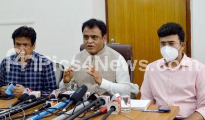 Photo Caption : DCM Ashwath Narayana with MP Tejasvi Surya and others addressing a press conference, in Bengaluru on Thursday 24th June 2021