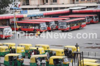 Photo Caption : Deserted KSRTC Bus stand at Majestic during weekend curfew amid ongoing Coronavirus lockdown, in Bengaluru on Sunday 27th June 2021