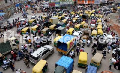 Photo Caption : Heavy traffic on the busy KR Market Road, as the Karnataka government eased restrictions for travel amid ongoing Coronavirus lockdown, in Bengaluru on Monday 28th June 2021