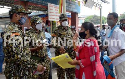 Photo Caption : BBMP Marshals impose fine on public who were not wearing masks amid coronavirus lockdown, in Bengaluru on Friday 2nd July 2021