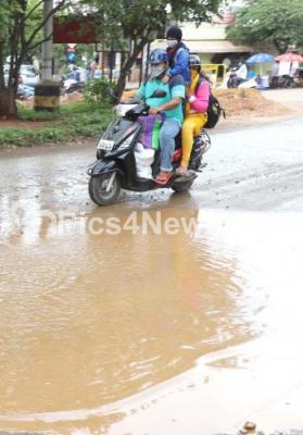 Potholes have been causing lot of problems to the motorists and the people at Ullal Main Road, in Bengaluru on Tuesday 6th July 2021